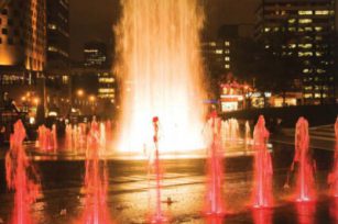 The musical fountain is a bright color in the social environment