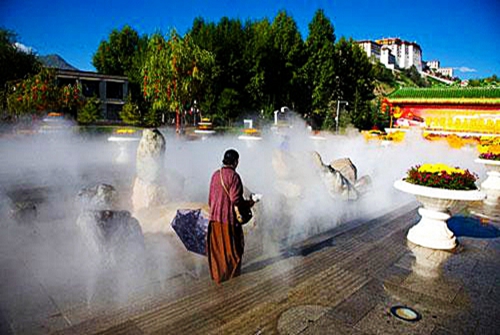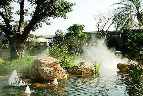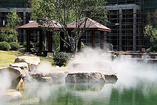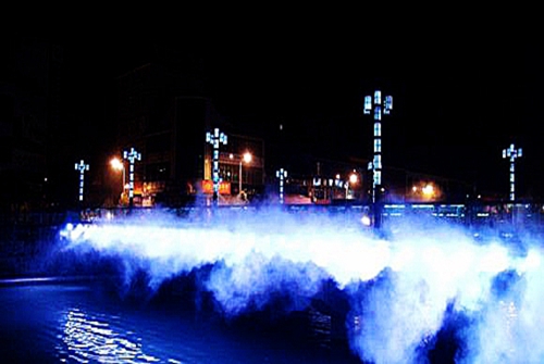 Cold fog fountain is also called artificial fog. It uses a high-pressure fog system to spray the purified water droplets in the form of fine mist of 1-15 micrometers. It seems that natural fog floats in the air, and it is also true and illusory. Wonderland, happy and happy. The large amount of negative ions generated by the spray can freshen the air and change the local microclimate. The mist absorbs heat when it evaporates quickly, and achieves the effects of cooling, landscaping and purifying the air.