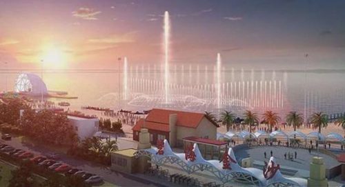 Bihai Sands large digital music fountain is built in the water in front of the beach of the water park. This project long fountain length 128M / width 30M; center spray height 68M, ordinary spray height 12M.