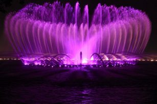 Water curtain movie is through the high-pressure pump and special water curtain generator, the water from top to bottom at high speed spray, atomized to form a fan-shaped “screen”, by a...